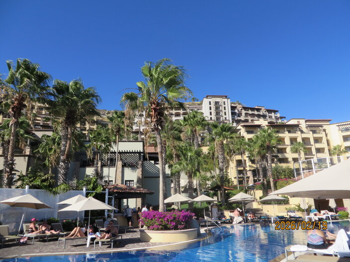February 19, 2026 Posted by morley Posted on February 21, 2026 View from a restaurant at the resort View from one of the pools to our building View to our building (the high one)