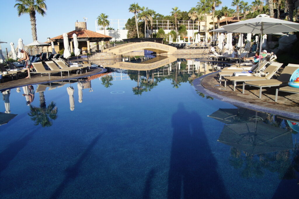 A pool at the resortVan at a pool at the resortAn other part of the resortFlowers at the resortA plant at the resortMore plantsMore plantsMain pool at Pueblo Bonito Sunset BeachAgain the main poolStairway to (well you know the rest)A sign on the beach at Pueblo Bonito Sunset BeachAmma and Afi at the 50’s Diner at the resort